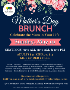 Join us for our annual Mother’s Day Brunch on Sunday, May 10. Seating’s are 9:30 am, 11:30 am, and 1:30 pm. Reservations are required and can be made by calling 724-295-2298 or emailing events@advacare-home.com.